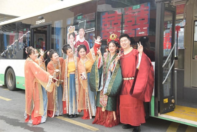 武汉的一对夫妇选择在520号公共汽车上制作婚礼